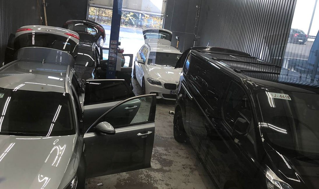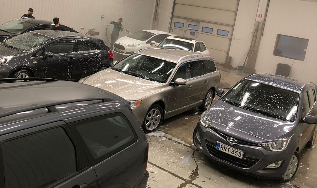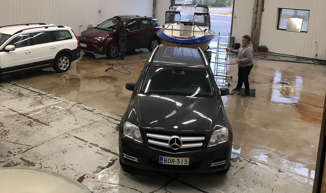 sekä vanteiden, ovivälien ja etumattojen pesun,